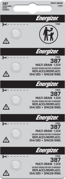 The 387S battery is the 394 battery with the spacer around it. As a result, the 387S will be labeled as 394 on the battery itself.